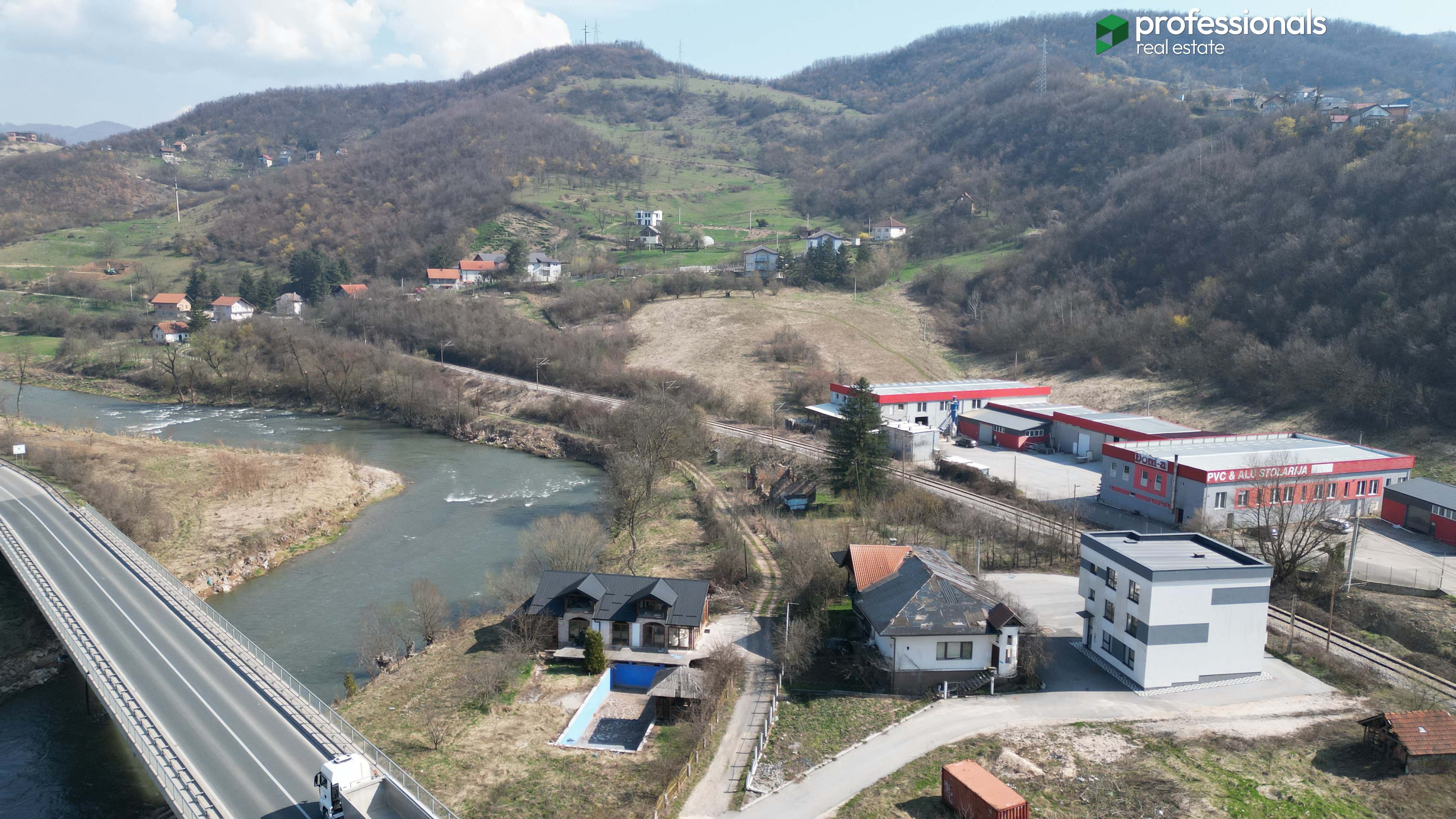 Professionals agencija za nekretnine prodaje prelijepo imanje nadomak Sarajeva, u mjestu Rajlovac sa pogledom na rijeku, zelenilo i magistralni put Sarajevo - Vogošća.